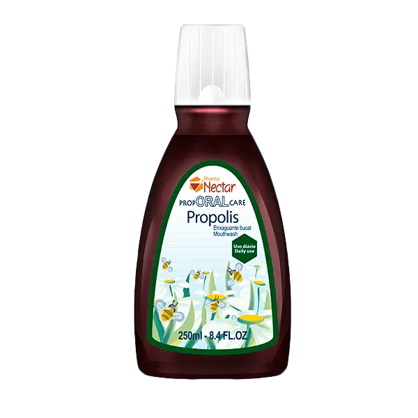 Própolis Verde associada à adequada higiene oral pode auxiliar com a saúde bucal plena, com dentes e gengiva saudáveis, brilhantes e hálito agradável. Bochechar com o Enxaguante Bucal PropORALcare após a escovação prolonga a proteção contra bactérias, deixando a sensação refrescante da menta e o hálito agradável.